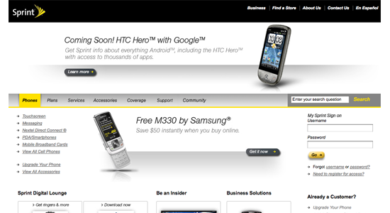 Sprint Website Now