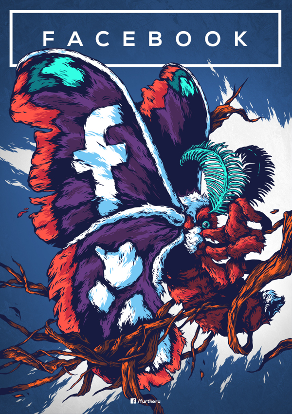 One of his latest projects is called “Social Networks”. It is a personal series of illustrations about the following social networks: Twitter, Instagram, Dribble, Tumblr, Facebook, and Vkontakte. The series is an interpretation of how Ivan sees social media nowadays ( e.g. The dead blue bird of Twitter may mean that social media causes damage to our lives). (IVAN BELIKOV : ILLUSTRATED SOCIAL NETORKS)
