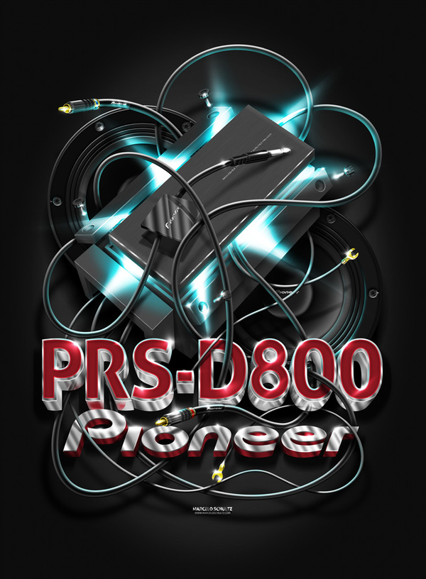 This is an illustration/typography artwork for Pioneer, a client of NesianStreet (Australia) showcasing PRS-D800 Class FD 2-Channel Bridgeable Amplifier.